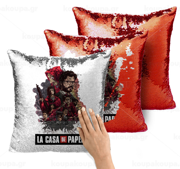 La casa de papel drawing cover, Μαξιλάρι καναπέ Μαγικό Κόκκινο με πούλιες 40x40cm περιέχεται το γέμισμα