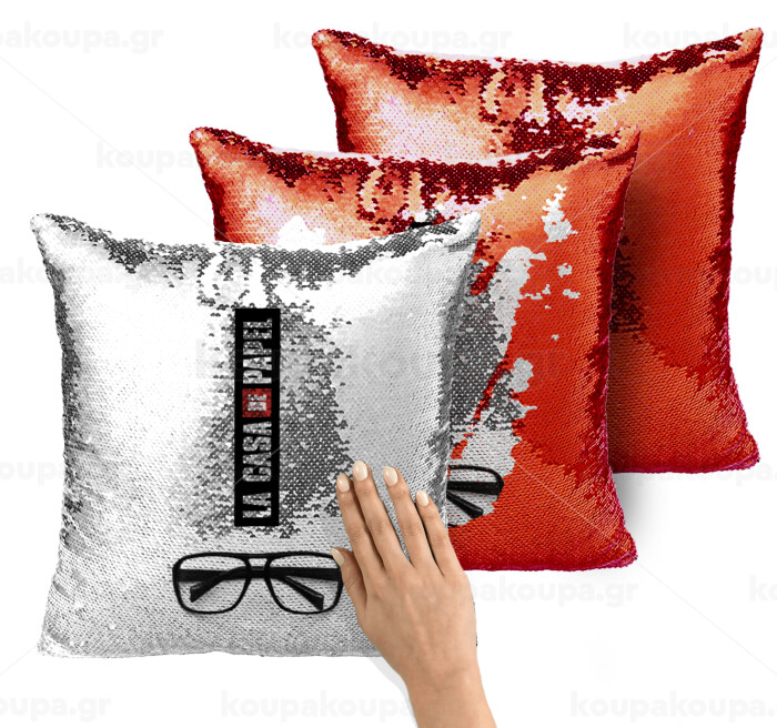 la professor, γυαλιά, Μαξιλάρι καναπέ Μαγικό Κόκκινο με πούλιες 40x40cm περιέχεται το γέμισμα