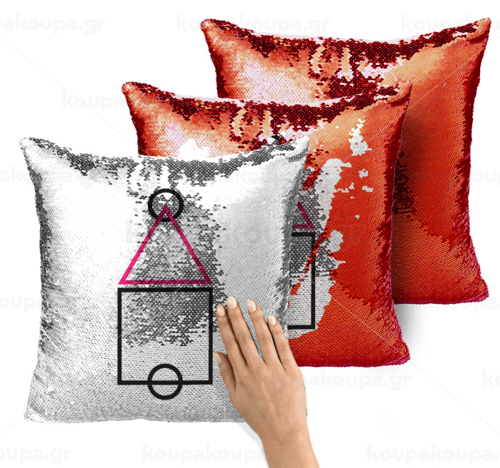 The squid game ojingeo, Μαξιλάρι καναπέ Μαγικό Κόκκινο με πούλιες 40x40cm περιέχεται το γέμισμα