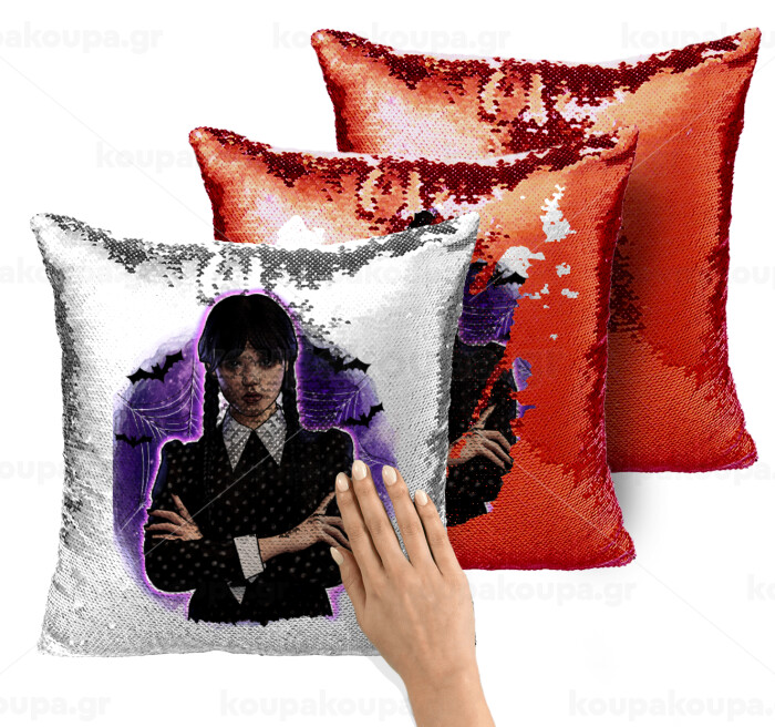Wednesday moonlight, Μαξιλάρι καναπέ Μαγικό Κόκκινο με πούλιες 40x40cm περιέχεται το γέμισμα