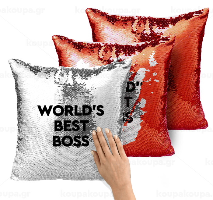 World's best boss, Μαξιλάρι καναπέ Μαγικό Κόκκινο με πούλιες 40x40cm περιέχεται το γέμισμα