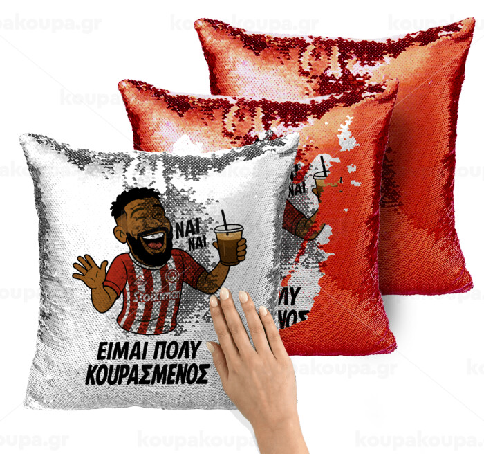Ροντινέι, "ΠΟΛΥ ΚΟΥΡΑΣΜΕΝΟΣ", Μαξιλάρι καναπέ Μαγικό Κόκκινο με πούλιες 40x40cm περιέχεται το γέμισμα