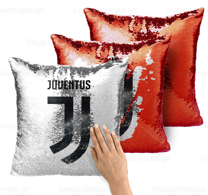 FC Juventus, Μαξιλάρι καναπέ Μαγικό Κόκκινο με πούλιες 40x40cm περιέχεται το γέμισμα