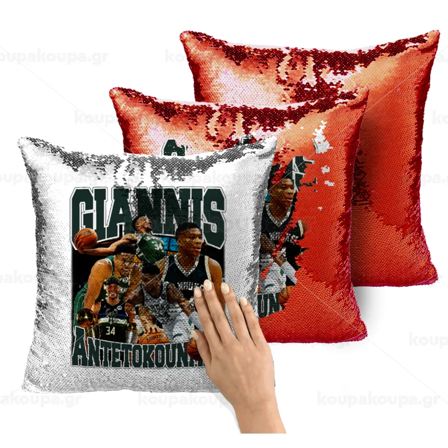 Giannis Antetokounmpo, Μαξιλάρι καναπέ Μαγικό Κόκκινο με πούλιες 40x40cm περιέχεται το γέμισμα