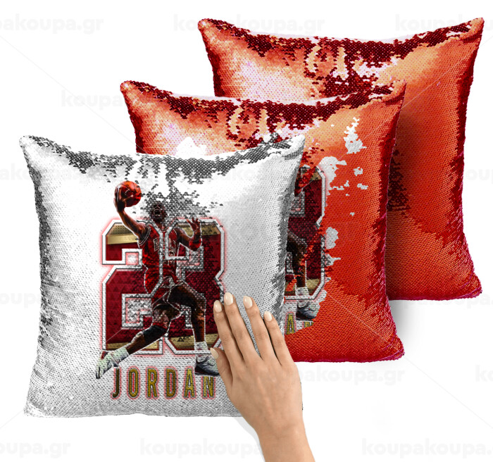 Jordan 23, Μαξιλάρι καναπέ Μαγικό Κόκκινο με πούλιες 40x40cm περιέχεται το γέμισμα