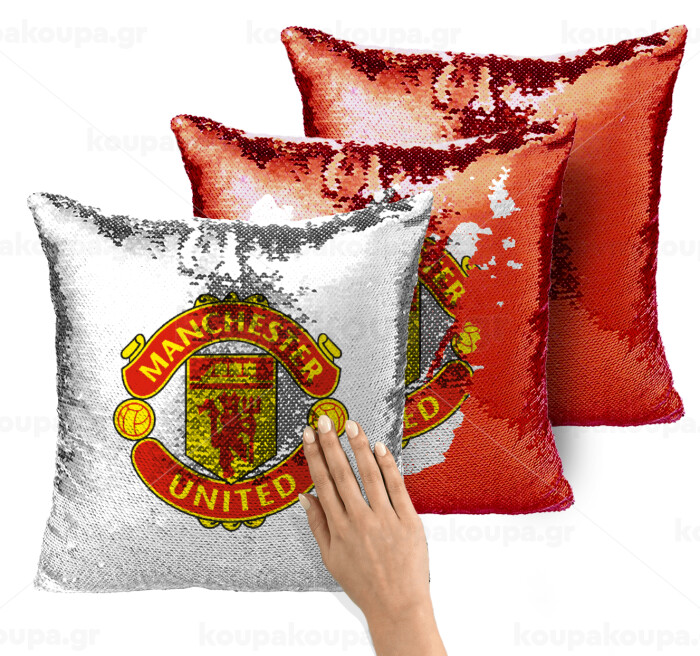 Manchester United F.C., Μαξιλάρι καναπέ Μαγικό Κόκκινο με πούλιες 40x40cm περιέχεται το γέμισμα