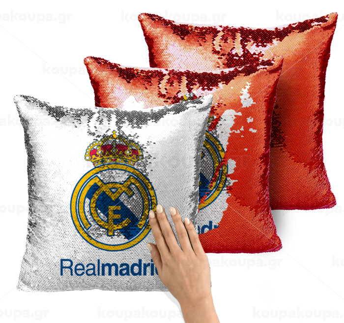 Real Madrid CF, Μαξιλάρι καναπέ Μαγικό Κόκκινο με πούλιες 40x40cm περιέχεται το γέμισμα