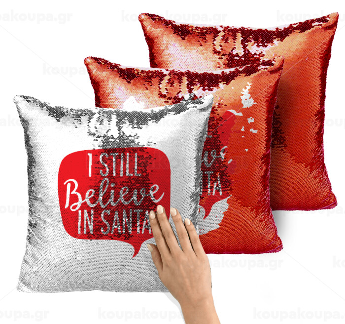 Ι still believe in santa, Μαξιλάρι καναπέ Μαγικό Κόκκινο με πούλιες 40x40cm περιέχεται το γέμισμα