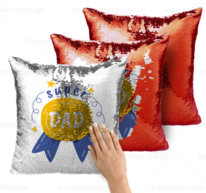 Μπαμπά είσαι για μετάλλιο, Μαξιλάρι καναπέ Μαγικό Κόκκινο με πούλιες 40x40cm περιέχεται το γέμισμα