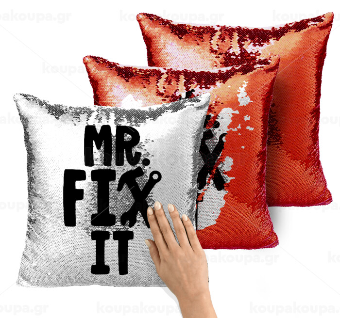 Mr fix it, Μαξιλάρι καναπέ Μαγικό Κόκκινο με πούλιες 40x40cm περιέχεται το γέμισμα