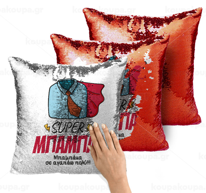 SUPER ΜΠΑΜΠΑΣ, Μαξιλάρι καναπέ Μαγικό Κόκκινο με πούλιες 40x40cm περιέχεται το γέμισμα