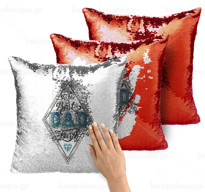 To the best DAD on earth, Μαξιλάρι καναπέ Μαγικό Κόκκινο με πούλιες 40x40cm περιέχεται το γέμισμα