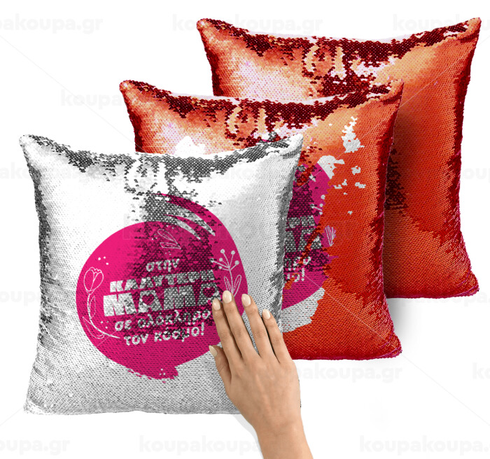 Στην καλύτερη μαμά του κόσμου!, Μαξιλάρι καναπέ Μαγικό Κόκκινο με πούλιες 40x40cm περιέχεται το γέμισμα