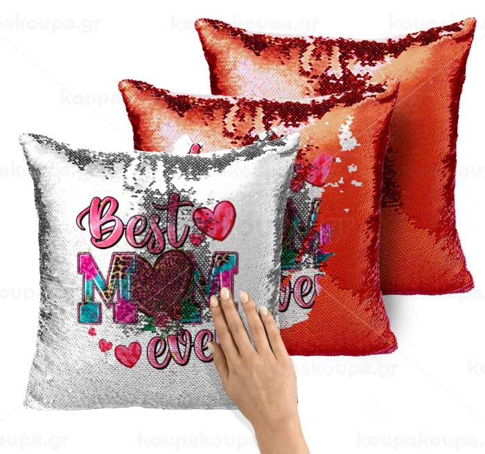 Best mom ever Mother's Day pink, Μαξιλάρι καναπέ Μαγικό Κόκκινο με πούλιες 40x40cm περιέχεται το γέμισμα