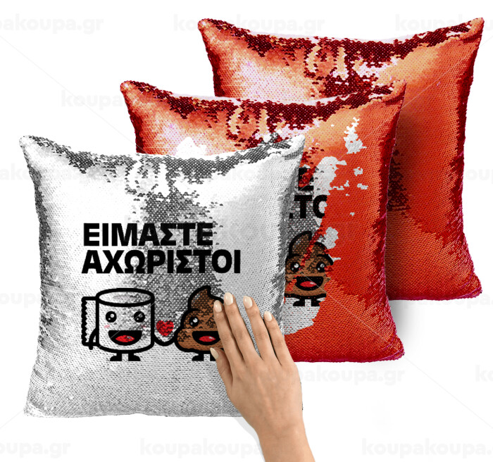 Είμαστε αχώριστοι, Μαξιλάρι καναπέ Μαγικό Κόκκινο με πούλιες 40x40cm περιέχεται το γέμισμα
