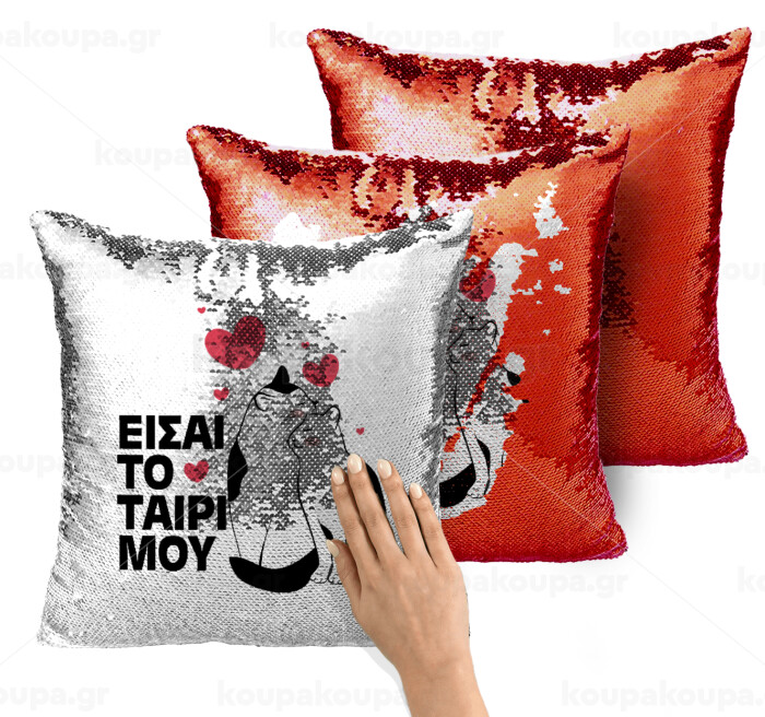 Είσαι το ταίρι μου, Μαξιλάρι καναπέ Μαγικό Κόκκινο με πούλιες 40x40cm περιέχεται το γέμισμα