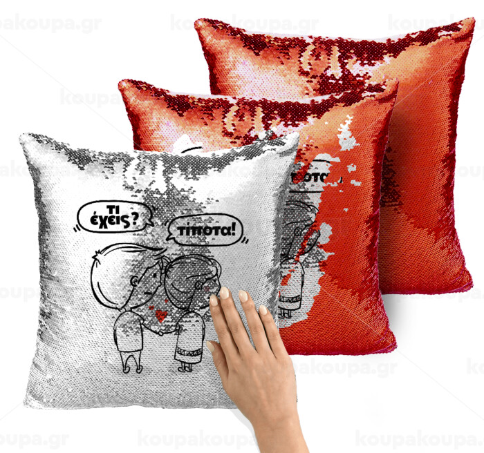 Τι έχεις? Τίποτα!, Μαξιλάρι καναπέ Μαγικό Κόκκινο με πούλιες 40x40cm περιέχεται το γέμισμα