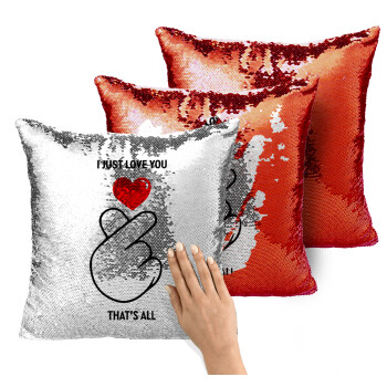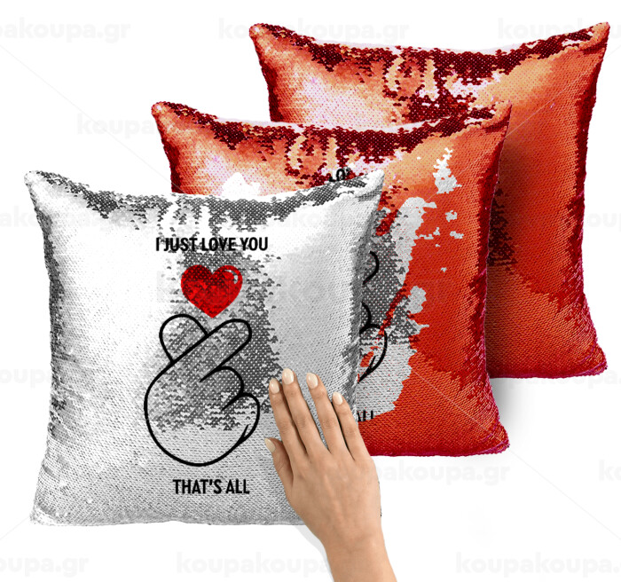 I just love you, that's all., Μαξιλάρι καναπέ Μαγικό Κόκκινο με πούλιες 40x40cm περιέχεται το γέμισμα