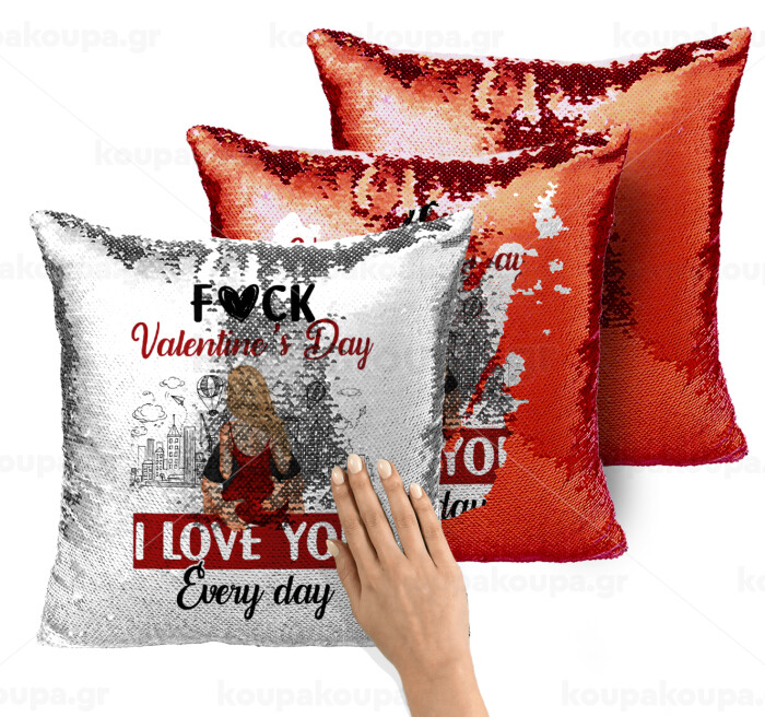 I love You Everyday , Μαξιλάρι καναπέ Μαγικό Κόκκινο με πούλιες 40x40cm περιέχεται το γέμισμα