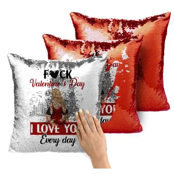 I love You Everyday , Μαξιλάρι καναπέ Μαγικό Κόκκινο με πούλιες 40x40cm περιέχεται το γέμισμα