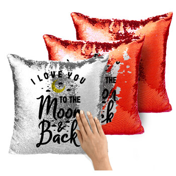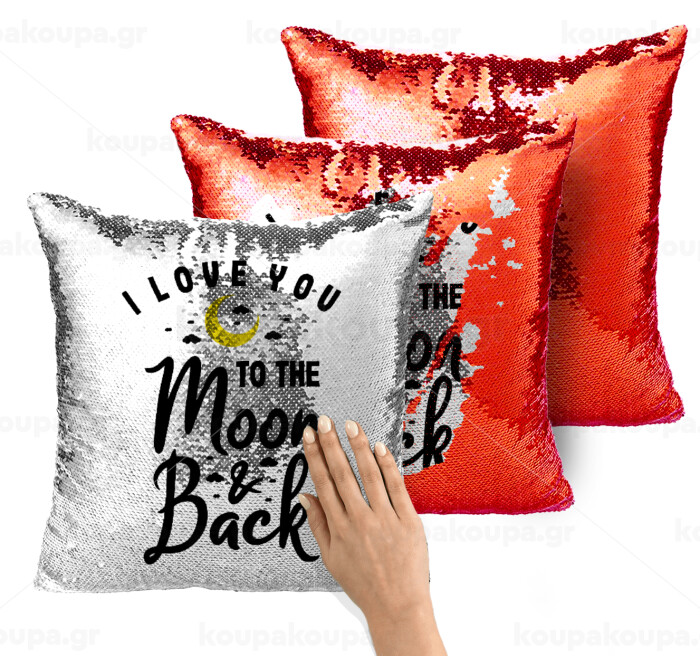 I love you to the moon and back, Μαξιλάρι καναπέ Μαγικό Κόκκινο με πούλιες 40x40cm περιέχεται το γέμισμα