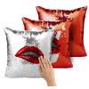 Lips, Μαξιλάρι καναπέ Μαγικό Κόκκινο με πούλιες 40x40cm περιέχεται το γέμισμα
