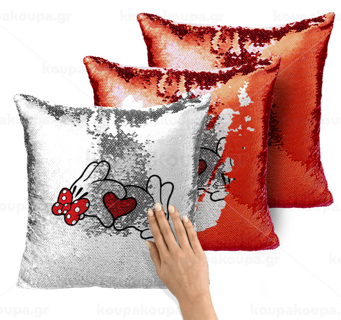 Love hands, Μαξιλάρι καναπέ Μαγικό Κόκκινο με πούλιες 40x40cm περιέχεται το γέμισμα