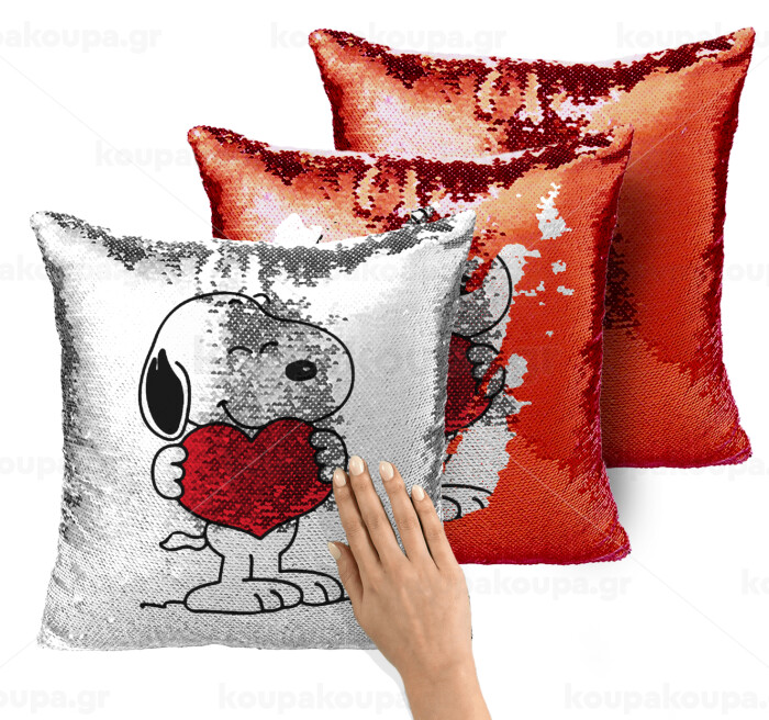 Snoopy takemy heart, Μαξιλάρι καναπέ Μαγικό Κόκκινο με πούλιες 40x40cm περιέχεται το γέμισμα