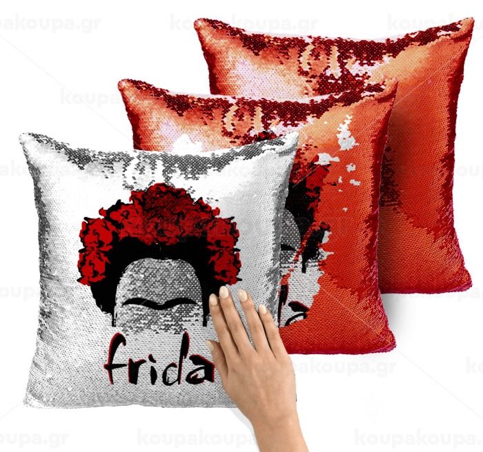 Frida, Μαξιλάρι καναπέ Μαγικό Κόκκινο με πούλιες 40x40cm περιέχεται το γέμισμα