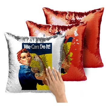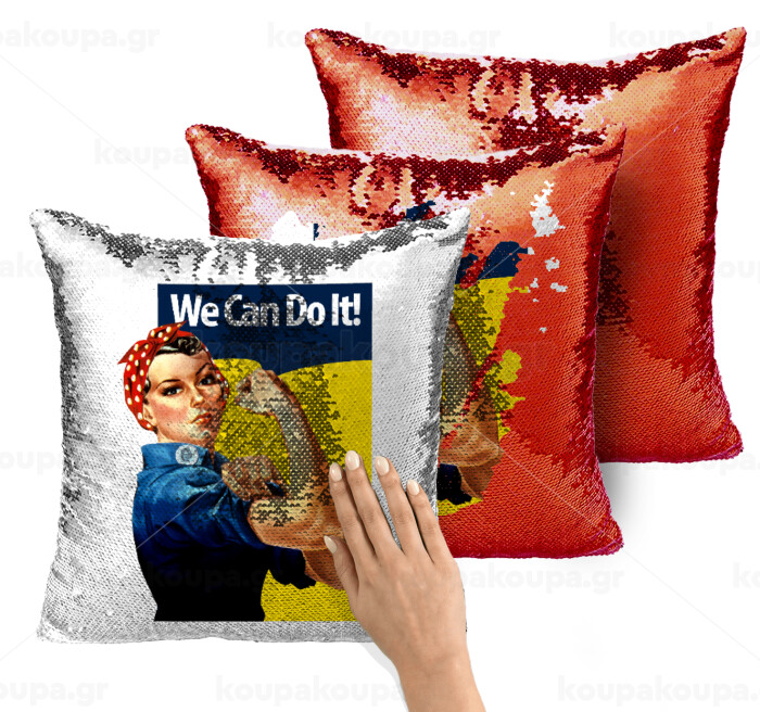 Rosie we can do it!, Μαξιλάρι καναπέ Μαγικό Κόκκινο με πούλιες 40x40cm περιέχεται το γέμισμα