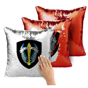 Έμβλημα Μονάδων Καταδρομών Ο Τολμων Νικα - Λοκ, Μαξιλάρι καναπέ Μαγικό Κόκκινο με πούλιες 40x40cm περιέχεται το γέμισμα