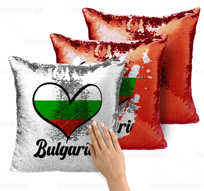 Bulgaria flag, Μαξιλάρι καναπέ Μαγικό Κόκκινο με πούλιες 40x40cm περιέχεται το γέμισμα