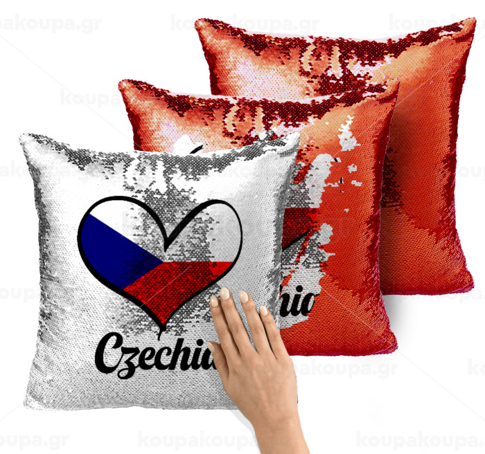 Czechia flag, Μαξιλάρι καναπέ Μαγικό Κόκκινο με πούλιες 40x40cm περιέχεται το γέμισμα