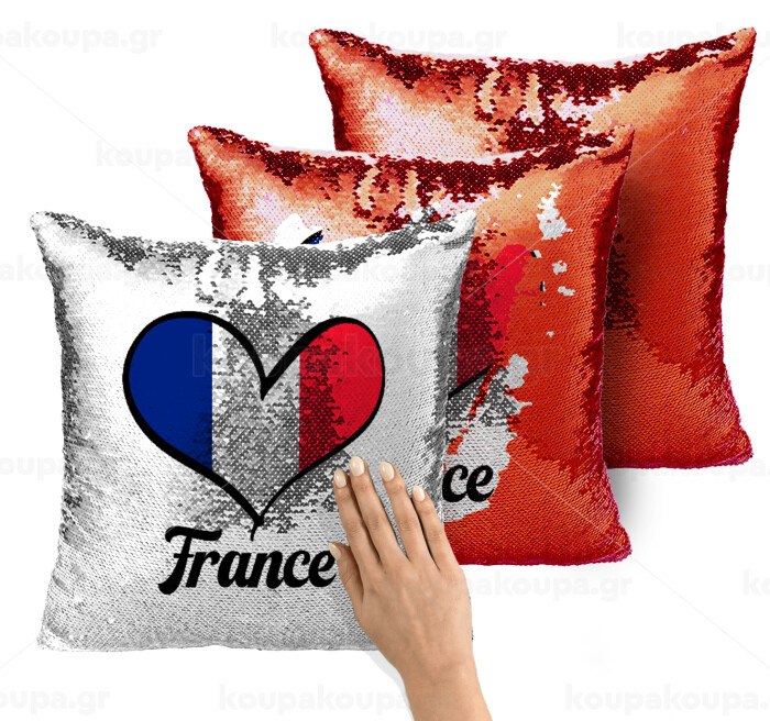 France flag, Μαξιλάρι καναπέ Μαγικό Κόκκινο με πούλιες 40x40cm περιέχεται το γέμισμα