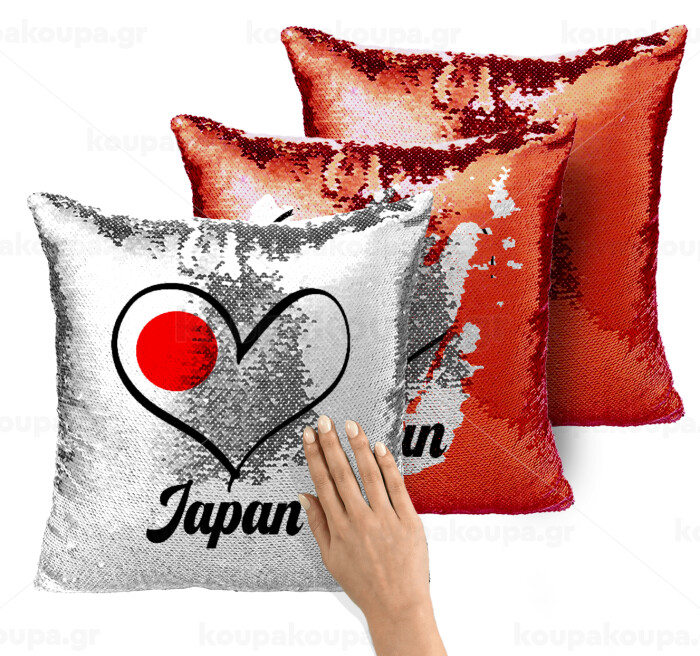 Japan flag, Μαξιλάρι καναπέ Μαγικό Κόκκινο με πούλιες 40x40cm περιέχεται το γέμισμα