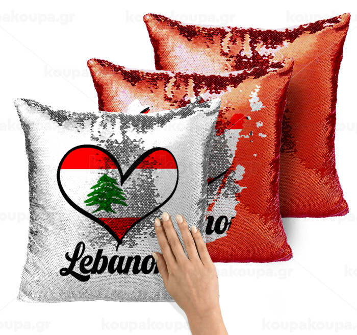 Lebanon flag, Μαξιλάρι καναπέ Μαγικό Κόκκινο με πούλιες 40x40cm περιέχεται το γέμισμα