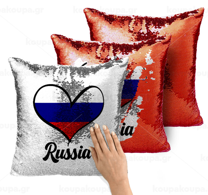 Russia flag, Μαξιλάρι καναπέ Μαγικό Κόκκινο με πούλιες 40x40cm περιέχεται το γέμισμα