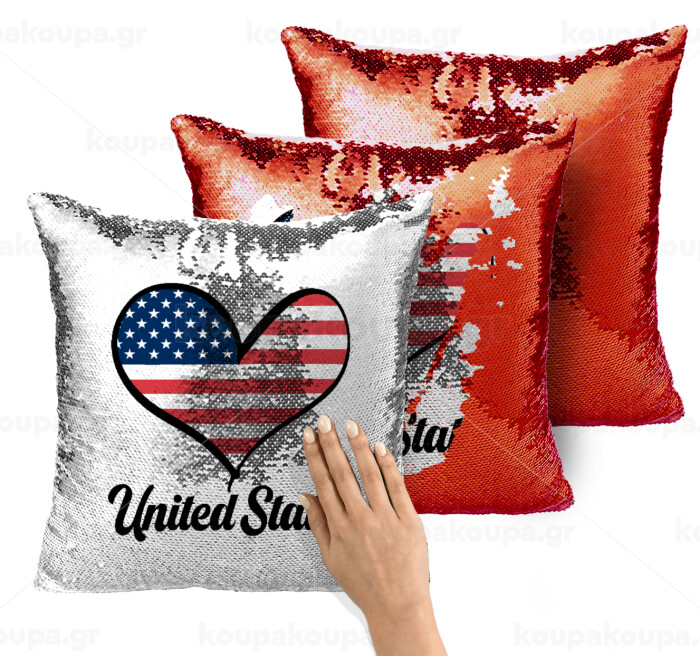 USA flag, Μαξιλάρι καναπέ Μαγικό Κόκκινο με πούλιες 40x40cm περιέχεται το γέμισμα