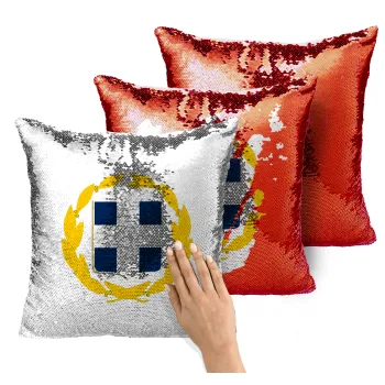Hellas Εθνόσημο, Μαξιλάρι καναπέ Μαγικό Κόκκινο με πούλιες 40x40cm περιέχεται το γέμισμα