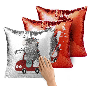 Βρουμ βρουμ, Μαξιλάρι καναπέ Μαγικό Κόκκινο με πούλιες 40x40cm περιέχεται το γέμισμα