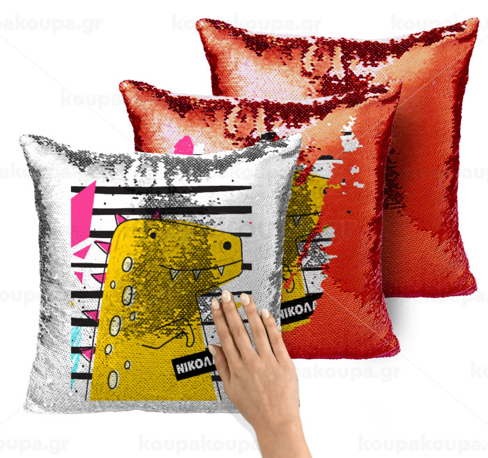 t-rex , Μαξιλάρι καναπέ Μαγικό Κόκκινο με πούλιες 40x40cm περιέχεται το γέμισμα