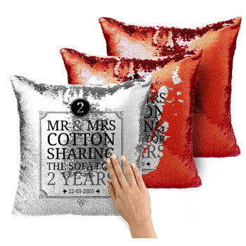 Mr & Mrs Sharing the sofa, Μαξιλάρι καναπέ Μαγικό Κόκκινο με πούλιες 40x40cm περιέχεται το γέμισμα