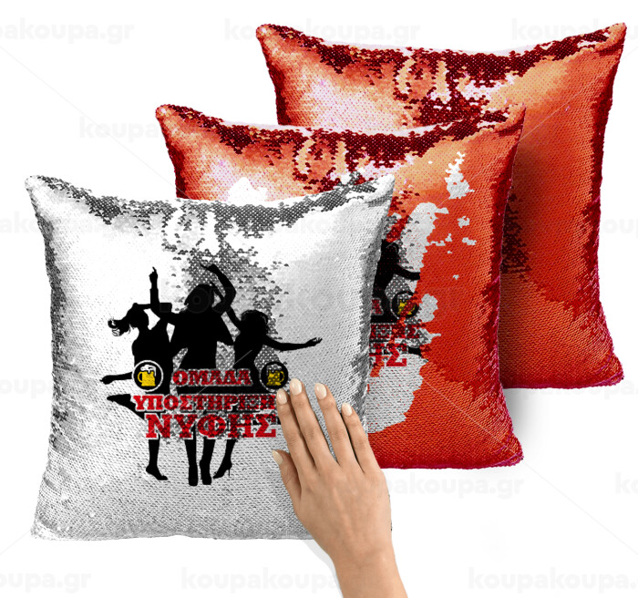 Bachelor Ομάδα υποστήριξης Νύφης, Μαξιλάρι καναπέ Μαγικό Κόκκινο με πούλιες 40x40cm περιέχεται το γέμισμα