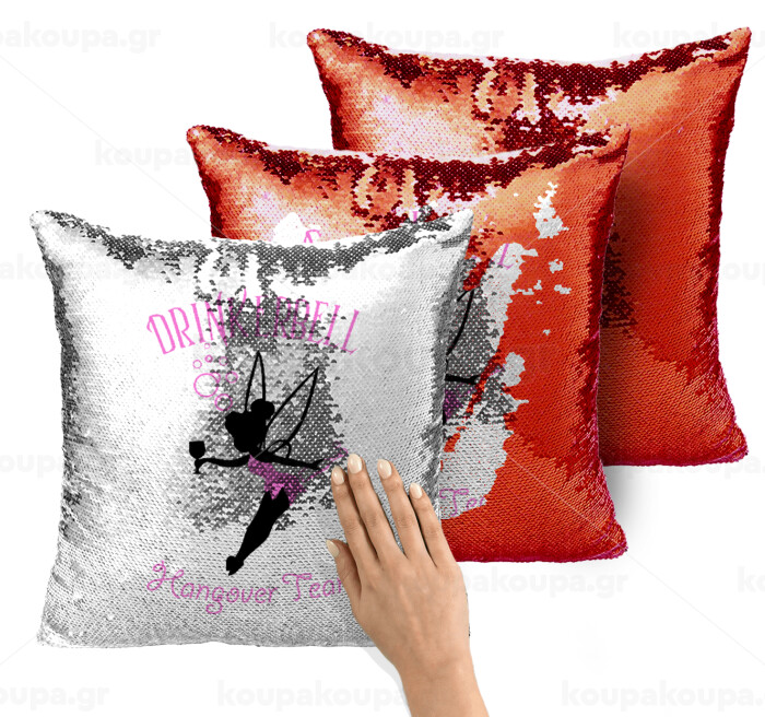 Drinkerbell bachellor, Μαξιλάρι καναπέ Μαγικό Κόκκινο με πούλιες 40x40cm περιέχεται το γέμισμα
