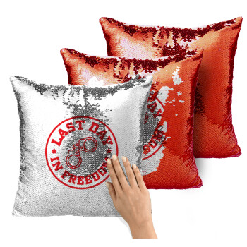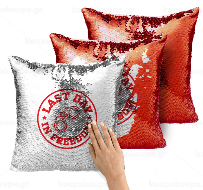 Last day freedom, Μαξιλάρι καναπέ Μαγικό Κόκκινο με πούλιες 40x40cm περιέχεται το γέμισμα