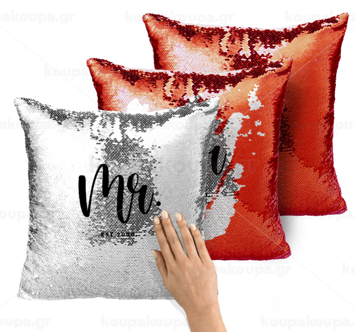 Mr & Mrs (Mr), Μαξιλάρι καναπέ Μαγικό Κόκκινο με πούλιες 40x40cm περιέχεται το γέμισμα