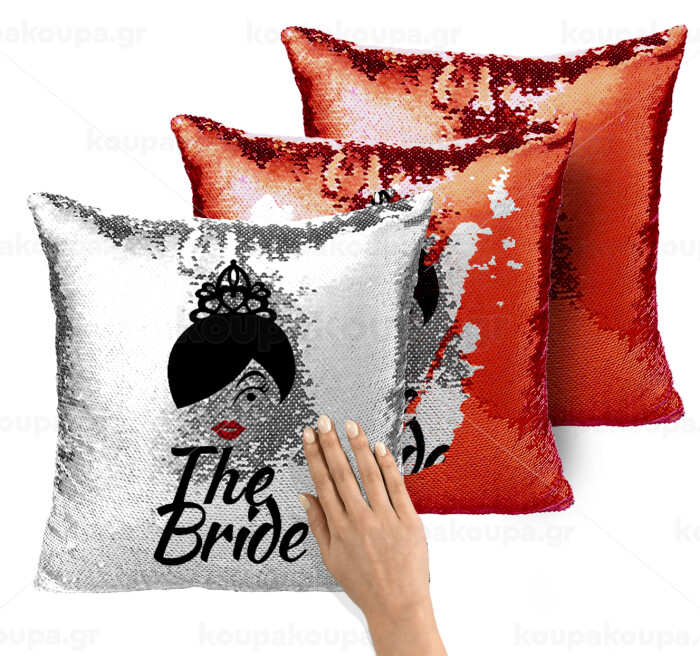 The Bride red kiss, Μαξιλάρι καναπέ Μαγικό Κόκκινο με πούλιες 40x40cm περιέχεται το γέμισμα