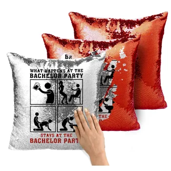 What happens at the bachelor party, stays at the bachelor party!, Μαξιλάρι καναπέ Μαγικό Κόκκινο με πούλιες 40x40cm περιέχεται το γέμισμα