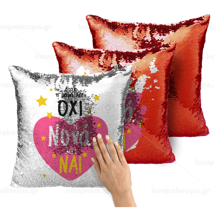 Η νονά λέει ναι!!!, Μαξιλάρι καναπέ Μαγικό Κόκκινο με πούλιες 40x40cm περιέχεται το γέμισμα