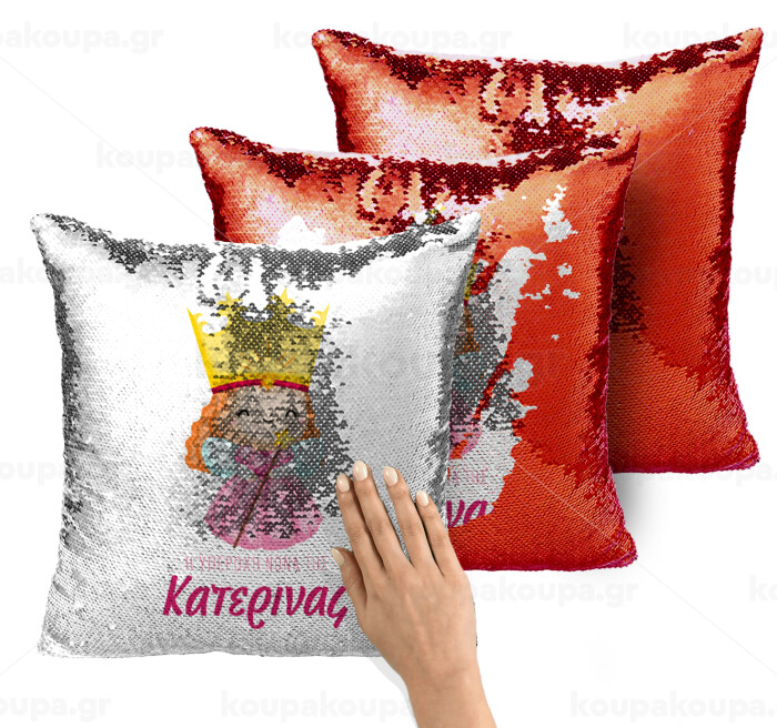 Η νονά μου, πριγκίπισσα, Μαξιλάρι καναπέ Μαγικό Κόκκινο με πούλιες 40x40cm περιέχεται το γέμισμα